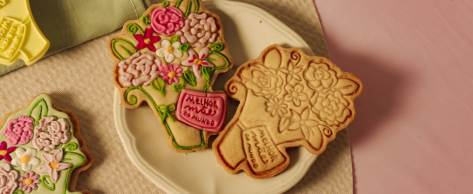 Biscoitos feitos com Cortador com Carimbo Melhor Mãe do Mundo ou Cortador com Carimbo Te Amo são exemplos simples de personalização que geram grande impacto. Esses detalhes ajudam a criar conexão afetiva e aumentam o valor percebido do produto.
