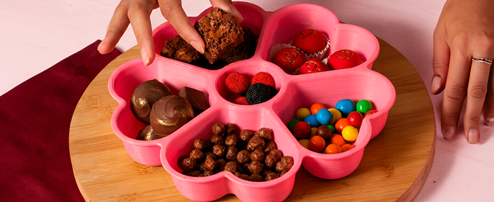 Os sorvetes também são uma excelente opção para o Dia dos Namorados, especialmente quando apresentados de forma criativa. Utilizar a Fondue Box Flor de Corações (Petisqueira) para acomodar potes de sorvete e acompanhamentos é uma forma inovadora de transformar uma sobremesa simples em um presente diferenciado.